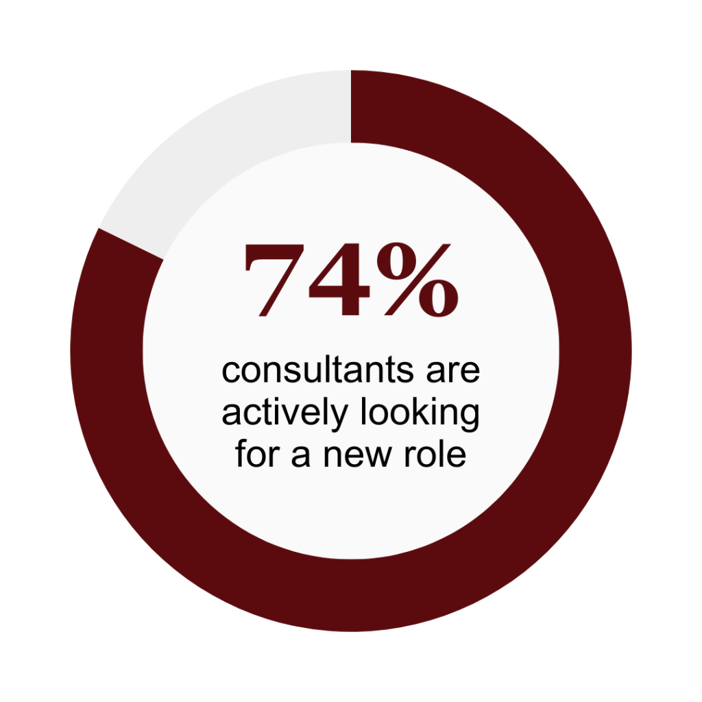The high level of candidate movement highlights a fluid and competitive talent market. Consultants are increasingly open to new opportunities, meaning employers must work harder to retain their teams while also competing for talent that is actively exploring alternatives.